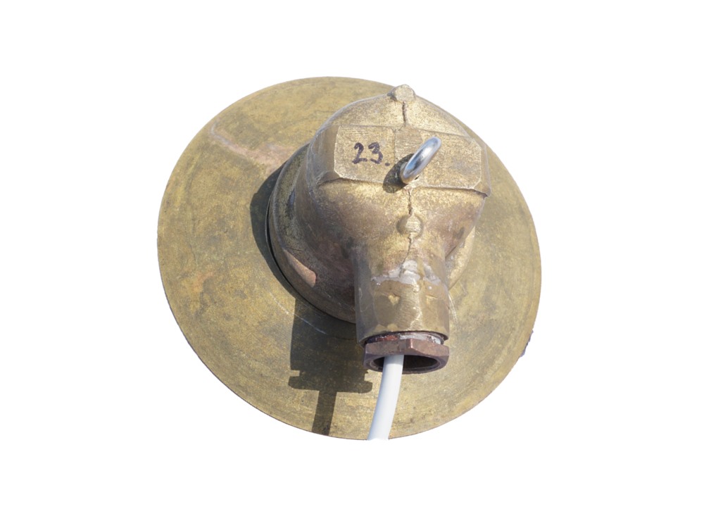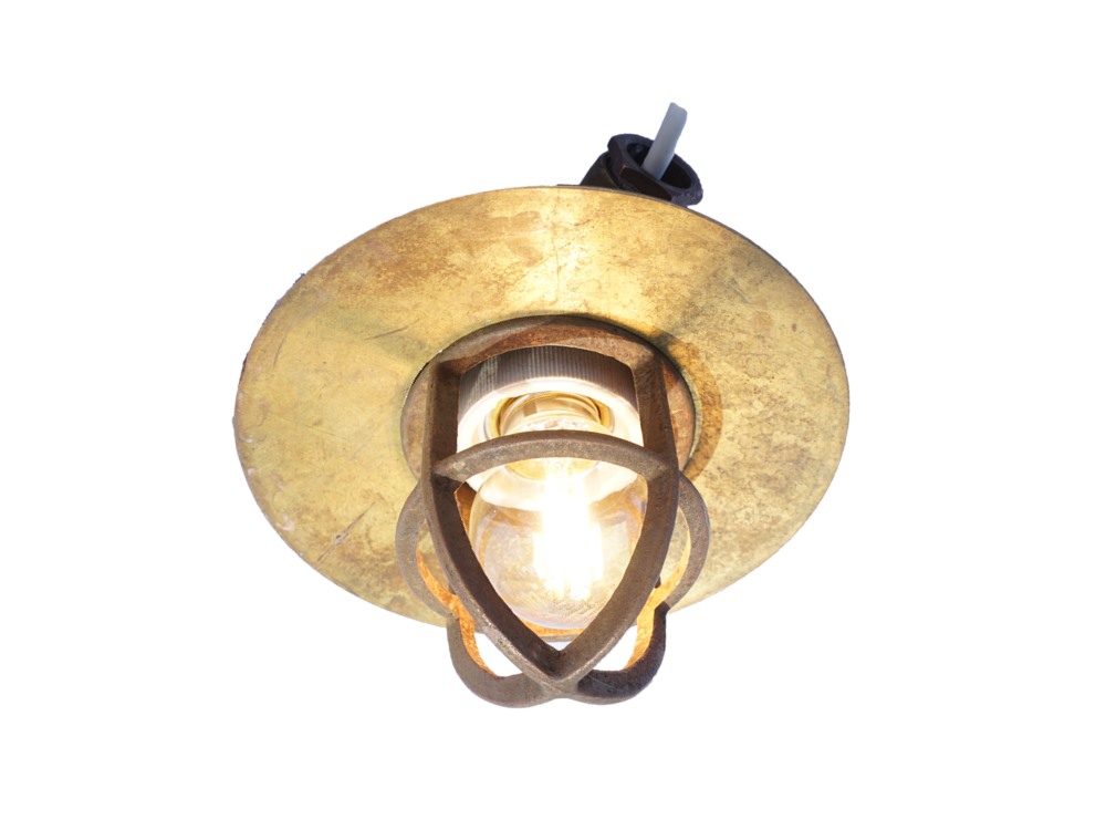 Enheden har eftermonteret øsken for loftophæng og messing skærmen der giver et soft og behageligt asymmetrisk lys.